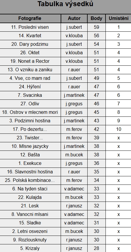 Všechny fotky zaslané do soutěže včetně výsledků.